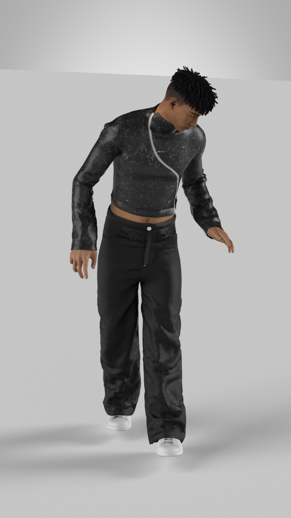 A ready-to-use CLO 3D leather crop jacket outfit for practice, study, and visual reference.
